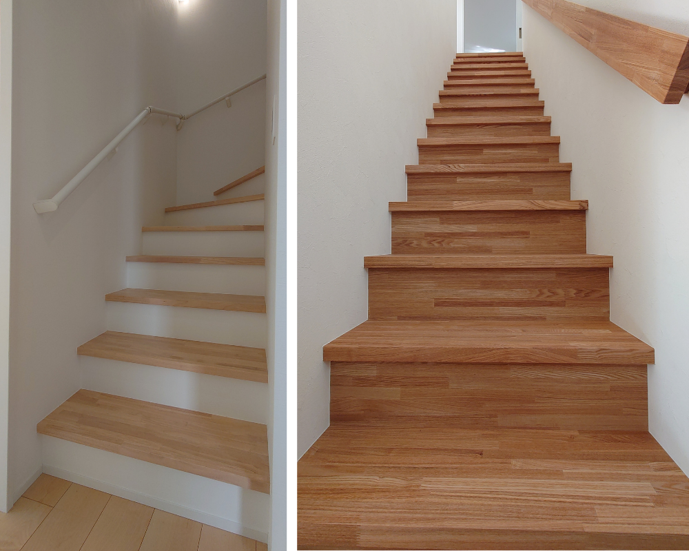 1階と2階を繋ぐ空間である階段は、1階の床の色に合わせることが多いです。