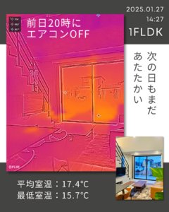 外気温:7.1℃ 平均室温:17.4℃ 最低室温:15.7℃