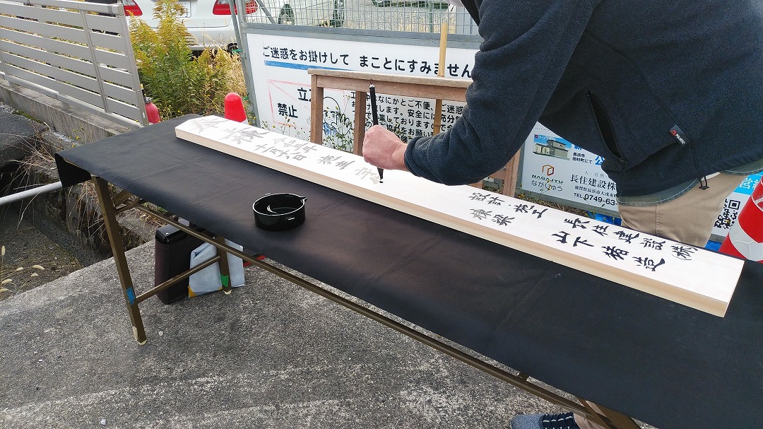 余呉の家・T様邸、写真は現場にてクロスの最終確認の様子です。