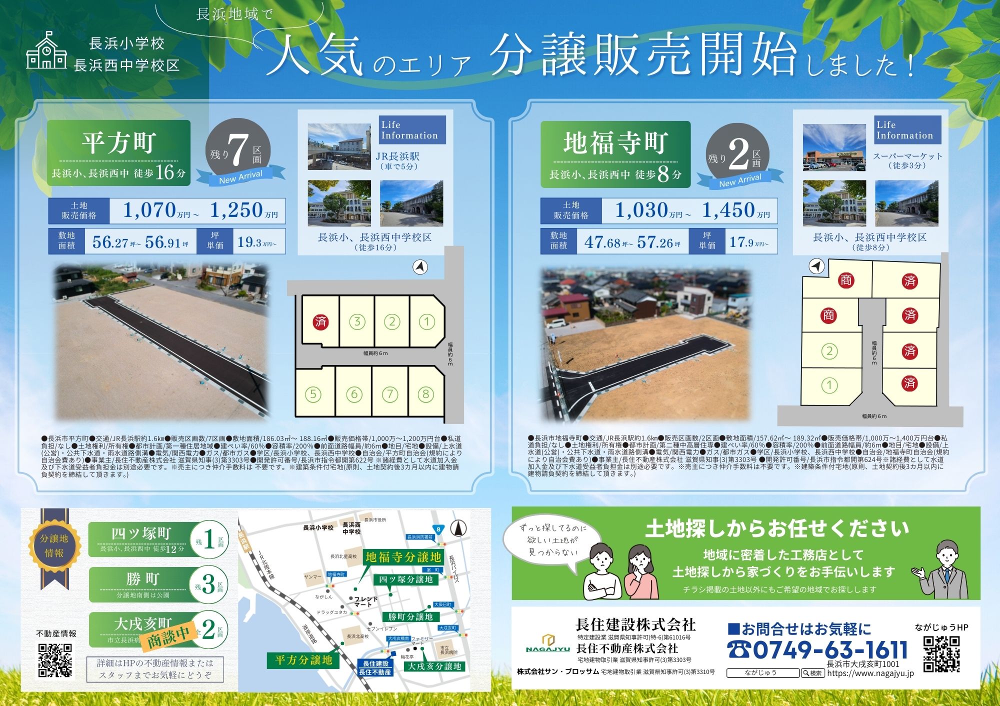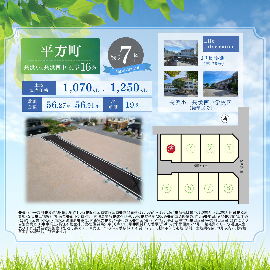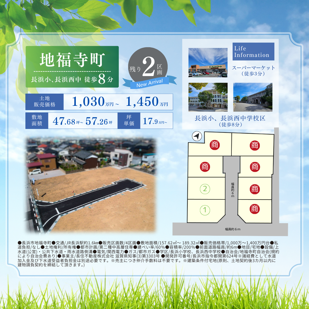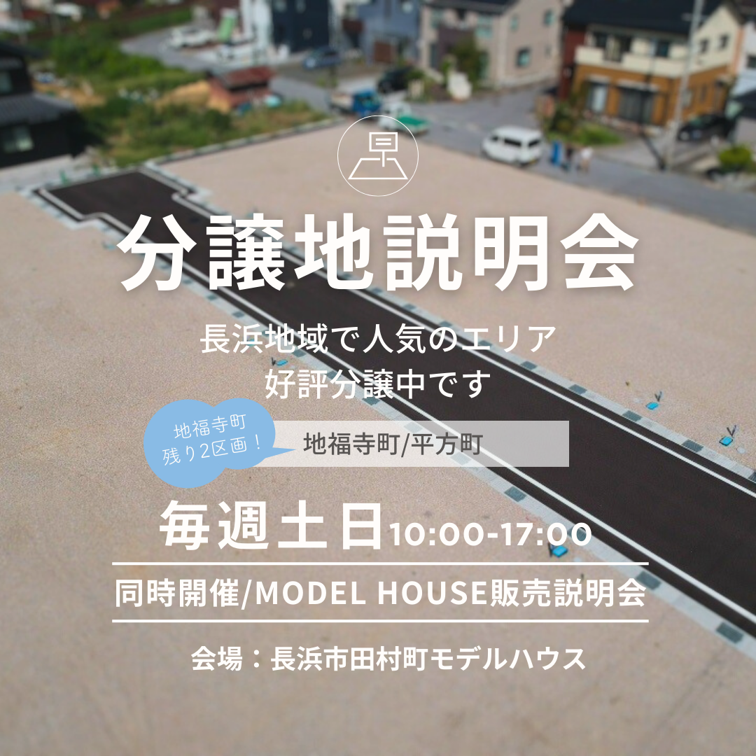| その他 | 長浜地域で人気のエリア、好評分譲中! 長浜市平方町、地福寺町分譲地  ̄V ̄ ̄ ̄ ̄ ̄ ̄ ̄ ̄ ̄ ̄ ̄ ̄ ▼おすすめポイント▼ ☑長浜小、長浜西中学区 ☑周辺には便利な商業施設多数 ☑幹線道路までのアクセスも良好 ☑閑静な住宅街 ------------- 毎週土日 10:00~17:00 分譲説明会を開催します! モデルハウスでゆっくりと お土地のお話ししませんか? ご希望の方には現地へのご案内もいたします! また事前のご予約で、平日やお仕事帰りなど ご希望のお時間でもご相談いただけます お気軽にお問い合わせください ※建築条件付き お問合せはコチラよりお願いいたします 他にも自社物件取り揃えております 詳しくはHPの不動産情報へどうぞ! |