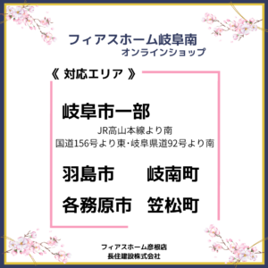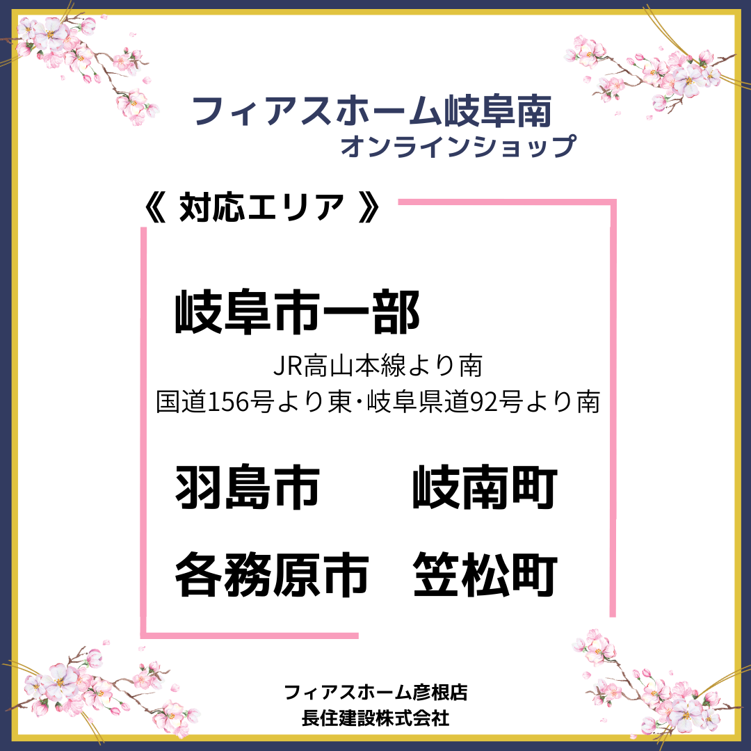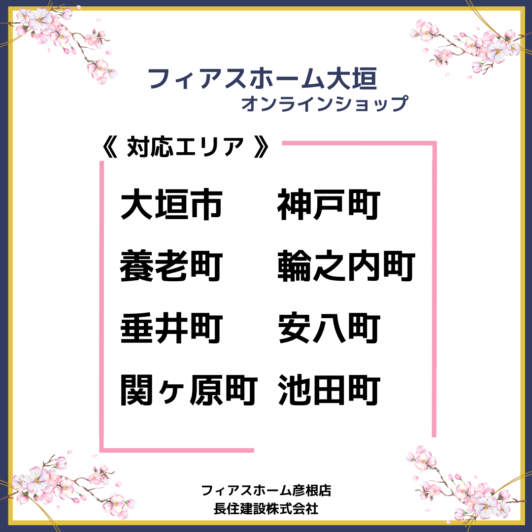 岐阜エリアへ拡大!! 投稿カテゴリー:お知らせ / ブログ / フィアスホーム 投稿公開日:2026-03-16 \\4月1日よりエリア拡大// フィアスホーム彦根店(長住建設株式会社)が フィアスホーム大垣・岐阜南 オンラインショップをスタートします。 岐阜エリアでも、 住まいづくりをもっと身近に。 オンラインショップなら… ・スマホやパソコンから気軽に相談 ・住まいの性能や施工事例をチェック ・資料請求も簡単 ・ご自宅から好きな時間に情報収集 忙しい方でも、 ご自宅から住まいづくりの第一歩を。 これからも地域の皆さまの 理想の住まいづくりをサポートします。 ・ おすすめ記事 さよならタイタニック号 フィアスホーム見学会のご案内 N様邸リフォーム工事 ショールームへ!