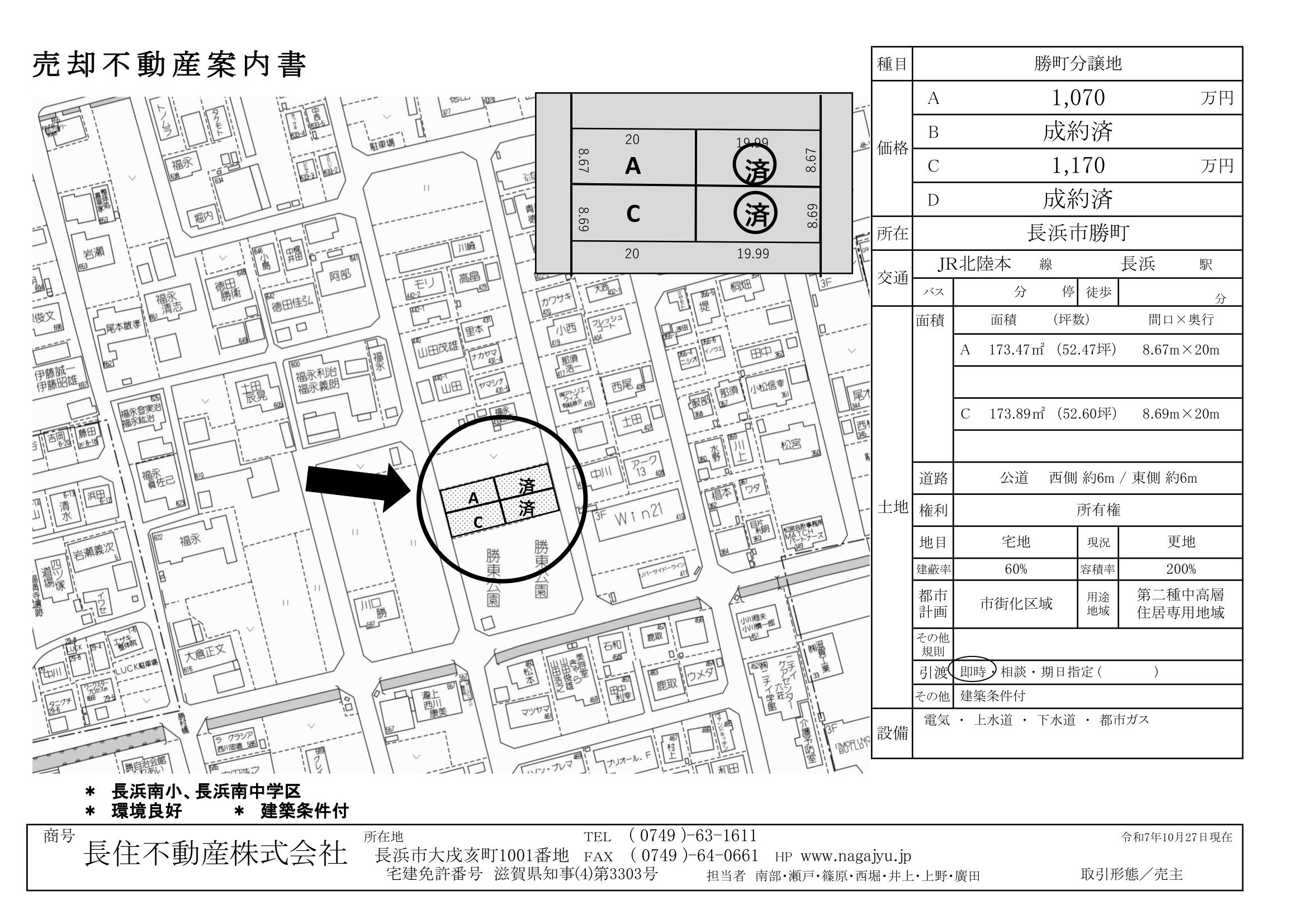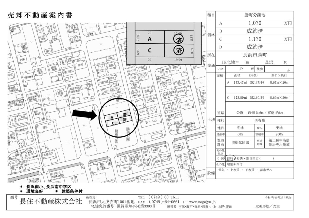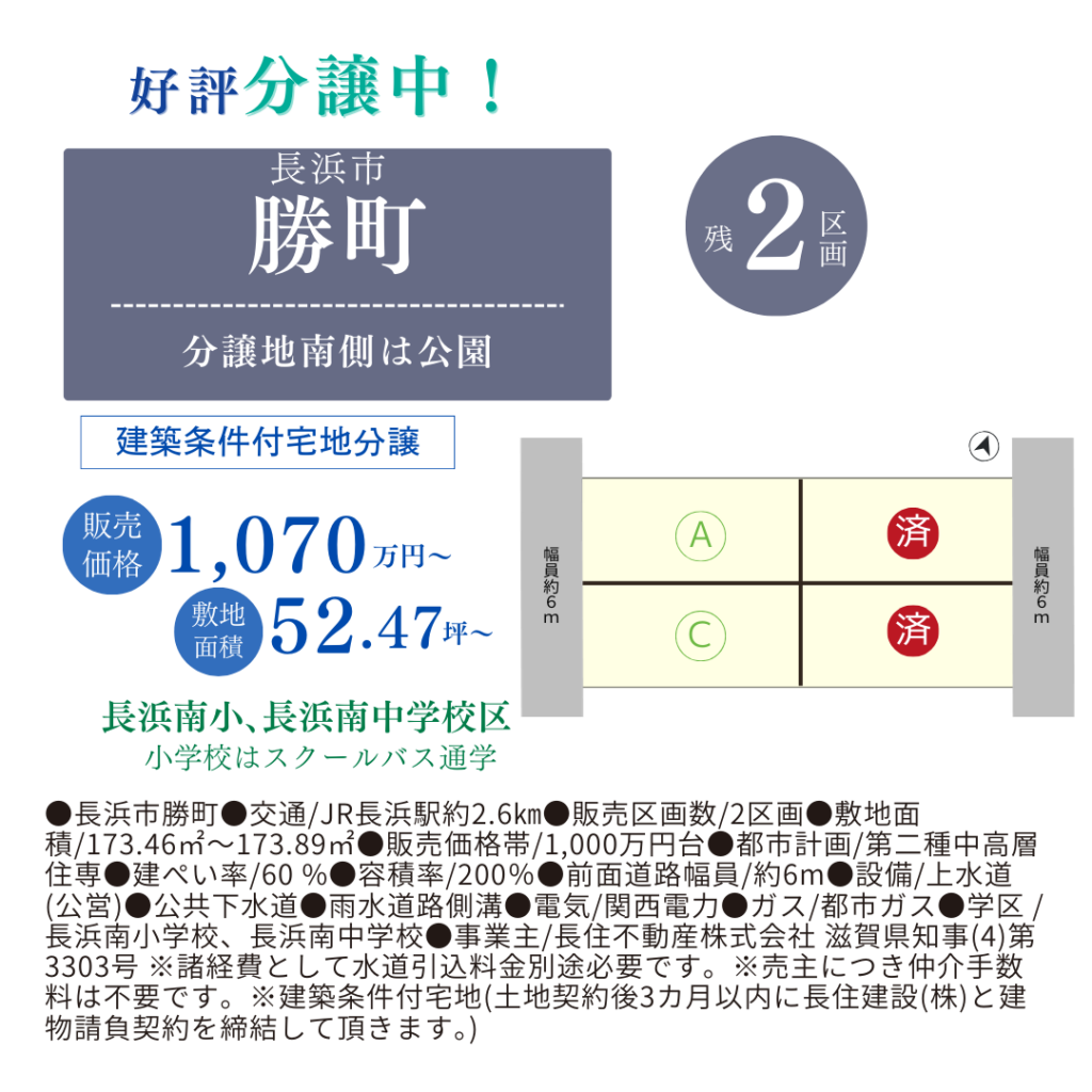 不動産案内書13(勝町) 投稿カテゴリー:不動産情報 投稿公開日:2024-05-20 勝町分譲地(2区画) 南側は公園で明るい敷地です 小学校へはバス通学 2区画合わせての購入も可能です のこり2区画です。お問い合せお待ちしております 不動産案内書(勝町4区画) おすすめ記事 売却不動産案内書09(末広町) 売却不動産案内書16(曽根町) 不動産案内書24 (四ツ塚町 中古戸建)
